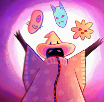 Vous incarnez un sorcier malicieux, et à l'aide de votre apprenti, vous créez des masques.